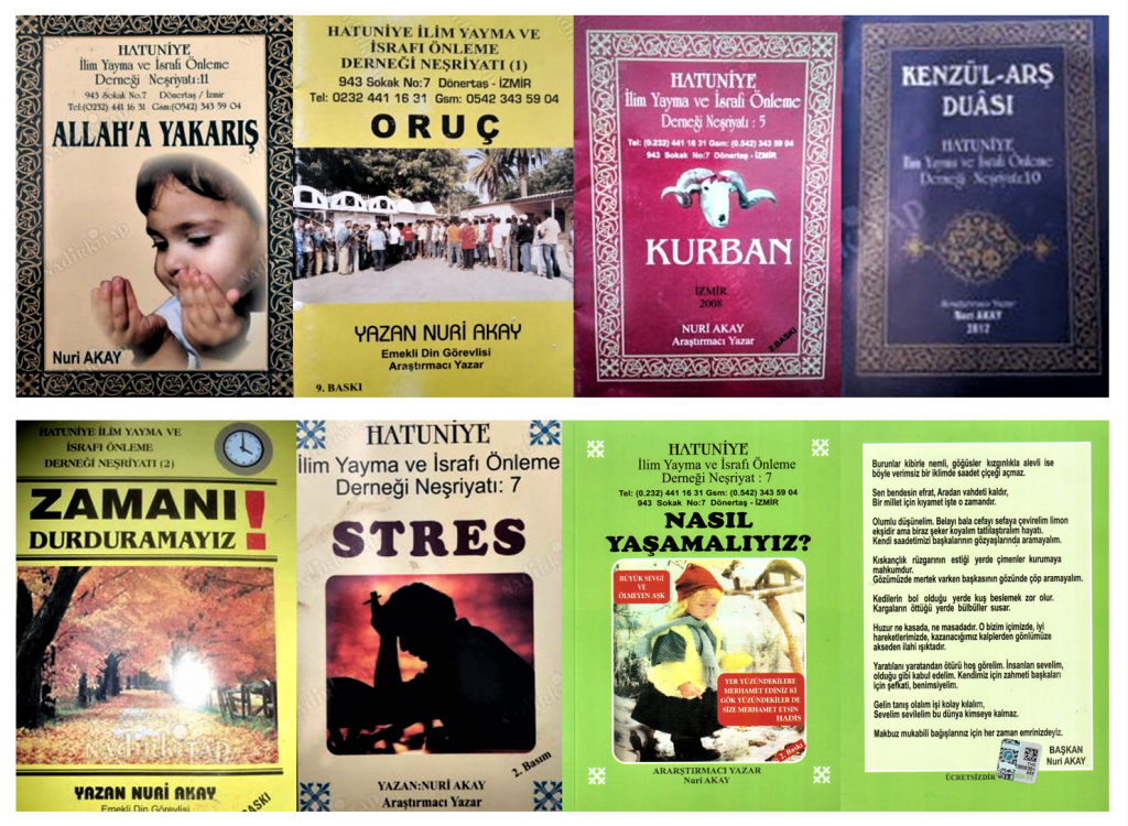 Dernek ayrıca, A3 Haber İnternet gazetesi yazarı Hayrullah Yıldız arkadaşımızın haberiyle gündeme getirdiği şekilde, 2015 öncesinde Kestanepazarı Öğrenci Derneği‘nin müdürlüğü ile Hatuniye İlim Yayma ve İsrafı Önleme Derneği‘nin kurucu başkanlığını yapıp şu sıralar derneğin danışmanı olarak çalıştığı söylenen Nuri Akay‘ın “Allah’a Yakarış”, “Oruç“, “Kurban”, “Kenzü’l-Arş Duası”, “Hatıralar”, “Stres”, “Zamanı Durduramayız” ve “Nasıl Yaşamalıyız” isimli dini kitaplarını yayınlayıp ücretsiz olarak dağıtıyor.
