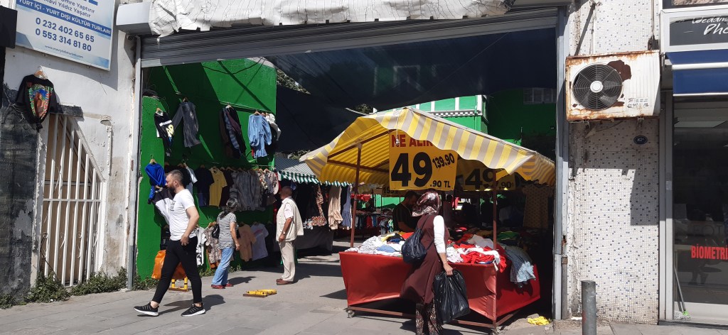 Bu yazıyı yazmadan önce okulun şimdiki halini gidip yerinde görmeye, oradaki havayı solumaya önem verdiğim için geçtiğimiz Cumartesi günü Gaziosmanpaşa Bulvarı’ndan pek fark edilmeyen okul bahçesine bir müşteri gibi girerek seyyar tezgahlarda sergilenen tekstil ürünlerine baktıktan sonra lüks arabaların park edildiği arka bahçeyi, 1307 sokağa açılan kapıyı, bahçedeki bina ve sundurmaları görmeye çalıştım. Hareketlerim satışı yapanların dikkatli gözleriyle takip edildiği için hemen oralarda ne yaptığım sorgulandı. Ben de Agora Semt Pazarı adıyla Facebook’ta yaptıkları reklam nedeniyle bahçeyi ve binaları görmek istediğimi ifade ederek meraklarını ve olası engellemeleri gidermeye çalıştım. Bu arada toptan malların satışının yapıldığı söylenen binanın birinci katına çıkarak eskiden dershane olduğunu sandığım ve tavanları asma tavanla kapatılmış dört ayrı bölümdeki toptan malları inceledim, sonrasında da beni üst kata çıkaracak ahşap merdivene yönelerek yukarı kata çıkmaya çalıştım; ama merdivenin ikinci kattaki kapısı kapalı olduğu için üst kata çıkmam mümkün olmadı. Merdivenden aşağı inerken de yine aynı meraklı ve kaygılı gözlerle yukarı katta ne aradığım soruldu. Ben yine aynı Facebook reklamından söz ederek üst katlarda sergileme yapılıp yapılmadığını merak ettiğimi söyleyerek bahane bulmaya çalıştım. Ama bu arada dikkatle araştırmama rağmen, duvarlardaki bir iki Arapça ayet levhası dışında işyerine ait resmi belgelere rastlamadım ve buradaki satışın hangi firma tarafından yapıldığını öğrenmem mümkün olmadı.