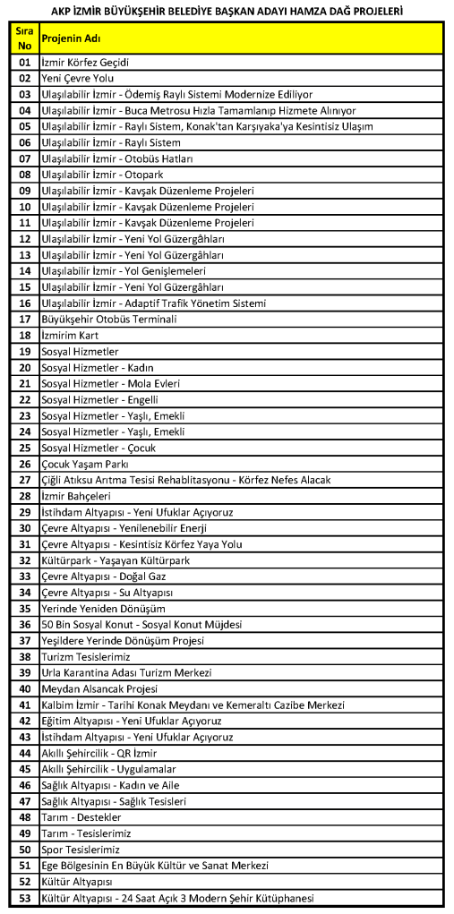 Aynı durum, 33 ve 39 numaralı “Çevre Altyapısı-Doğalgaz” ve “Urla Karantina Adası Turizm Merkezi” isimli projeler için de geçerlidir.