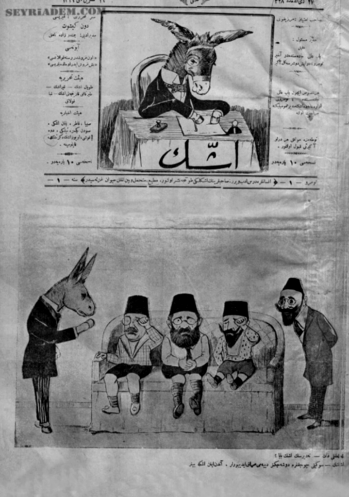 Kılıçarislan, V., “II. Meşrutiyet Dönemi Mizah Basınında Baha Tevfik ve Eşek Gazetesi, Atatürk Üniversitesi Eedebiyat Fakültesi Dergisi, Sayı 59, Aralık 2017, s.195-206.