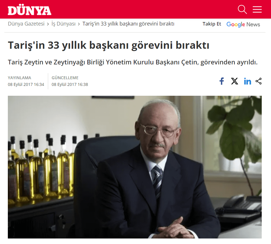 Aynen 8 Eylül 2017 tarihinde 33 yıllık başkanlık görevini kendi isteğiyle bırakan TARİŞ Zeytin ve Zeytinyağı Birliği Yönetim Kurulu Başkanı Cahit Çetin gibi “Batı emperyalizmi kendi dışındaki ülkelerde örgütlü tarım istemiyor. İşin dramatik yanı bizler bu tuzağa düşüp, büyük sermayenin karşısında durabilecek en önemli birleştirici gücümüzü kaybediyoruz. Kooperatif ve birliklerimize sahip çıkmalıyız. 16 tarım satış kooperatifi birliklerinden kaçı faal, en önemlisi kaç tanesi etkili pazar politikasını yürütebiliyor, buna bakmak lazım. Ortaklarımız kooperatiflerine sahip çıktığı sürece piyasa belirleyici gücü katlanarak artacak.” demesi gibi ya da kooperatiflerin yok olmasında iktidarların etkisini sorgulayarak veya başka nedenleri sıralayarak bu iki güçlü kooperatifin ya da kooperatif birliğinin bugün niye komada olduğunu açıklamaları dileğiyle…