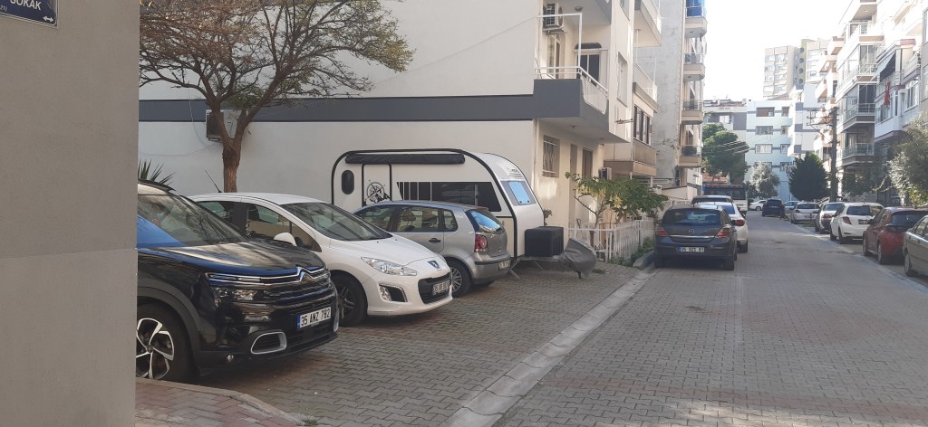 14 Ocak 2024 tarihinde yazarak ifade etmeye çalıştığımız bu sorunu yerinde görmek amacıyla, genellikle motorlu ya da motorsuz karavan, “tiny house” ve konteyner ev sahiplerinin oturduğu Atakent, Şemikler, Mavişehir ve Bostanlı gibi sosyo-ekonomik durumu yüksek mahallerinde, özellikle de Karşıyaka sahilinde yaptığım gezide fotoğraf çektiğim noktaları gösteren Google Earth görüntüsü ile onu izleyen aşağıdaki fotoğraflar, bu sorunun belediye zabıtası marifetiyle çözümlenmekten uzak olduğunu ve otoparklardaki işgalin halen devam ettiğini açık bir şekilde göstermektedir. Hatta karavana dönüştürülmüş koskocaman bir otobüsün bir somut gerçeğe dahil edildiğini dikkate aldığımızda…