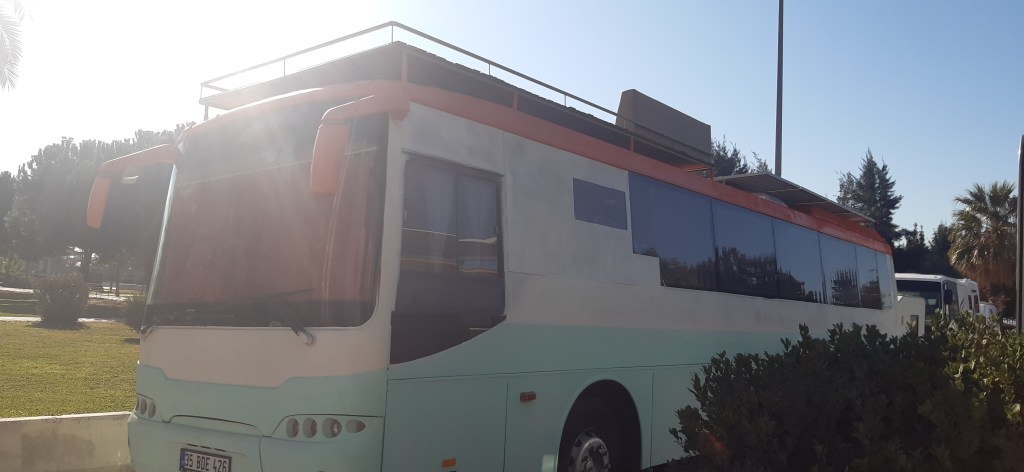 4. Nokta: Karavana dönüştürülmüş otobüs… Acaba işgal ettiği yere kaç adet otomobil park edebilir?