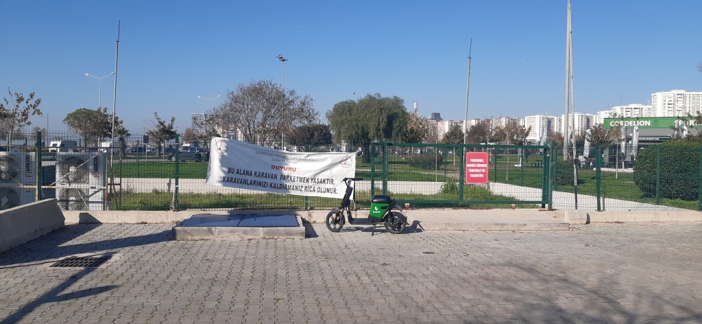 3. Nokta: Karşıyaka Belediyesi’nin boşuna ve sonuçsuz çabası… Zira, Karşıyaka Belediyesi’nin “Bu alana karavan park etmek yasaktır. Karavanlarınızı kaldırmanız rica olunur” afişin asıldığı yerin 100 metre ötesinde onlarca karavan park etmiş durumda…