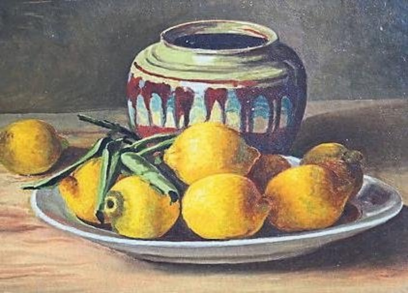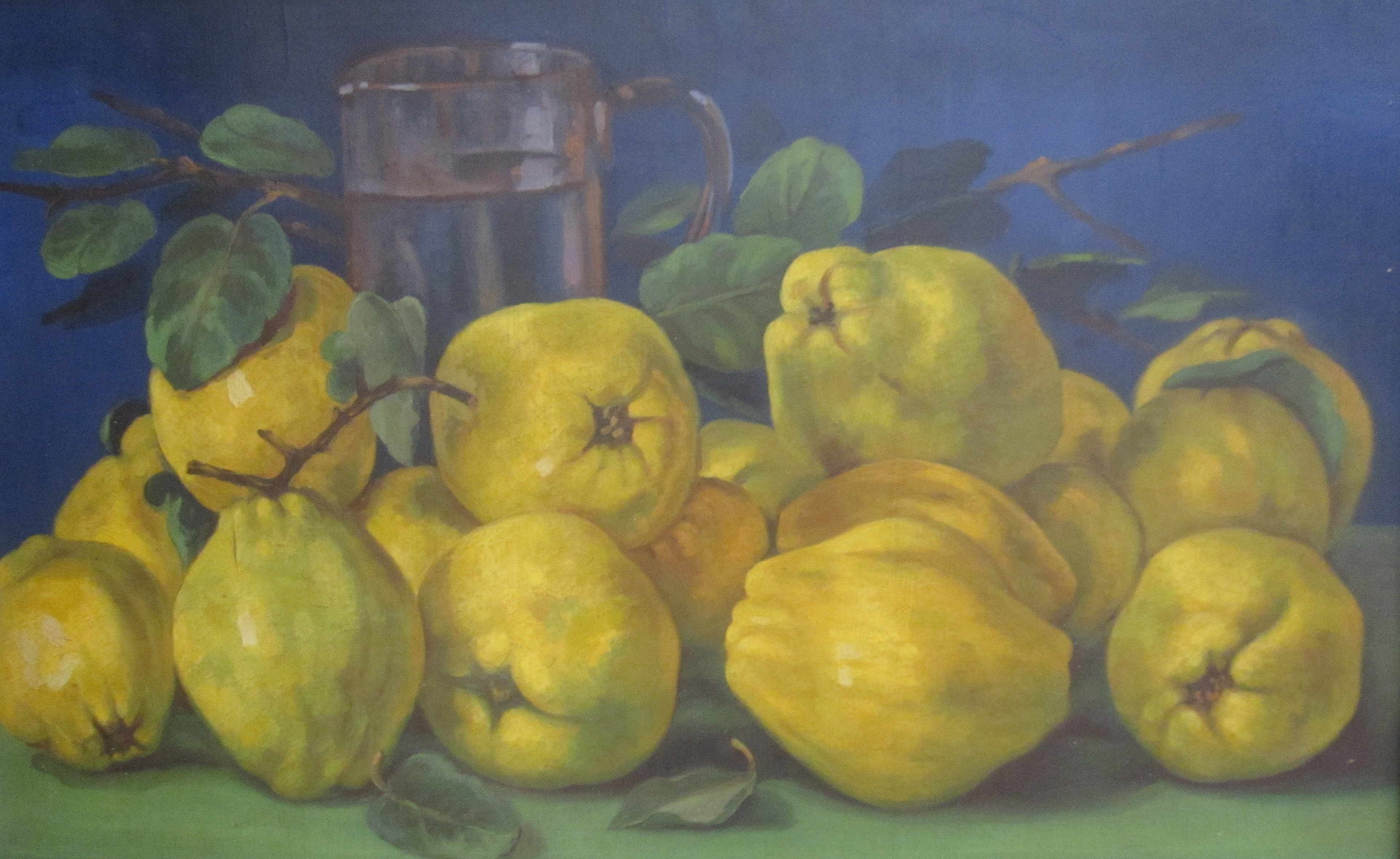 Fuad (Fuat) Mensi Dileksiz 1880-1965, Duralit Üzerine Yağlıboya, Ayvalar, 38X65 cm., Ankara Resim ve Heykel Müzesi.