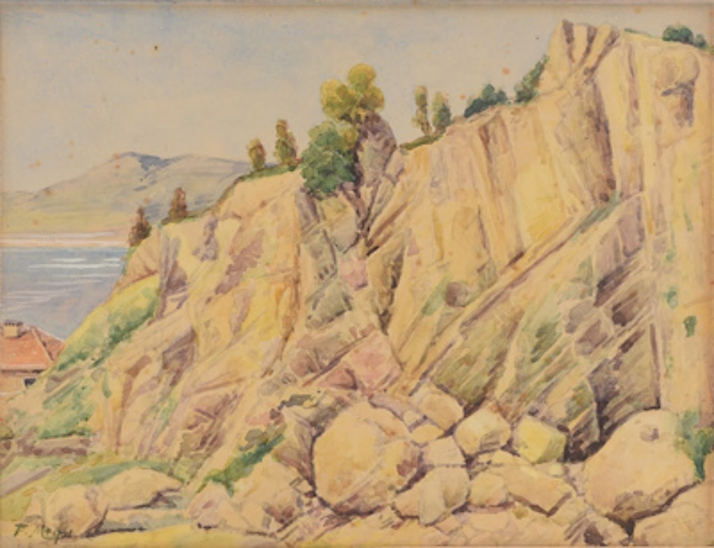 Fuad (Fuat) Mensi Dileksiz 1880-1965, Kayalıklar, Kağıt Üzerine Yağlıboya, 24X30 cm.
