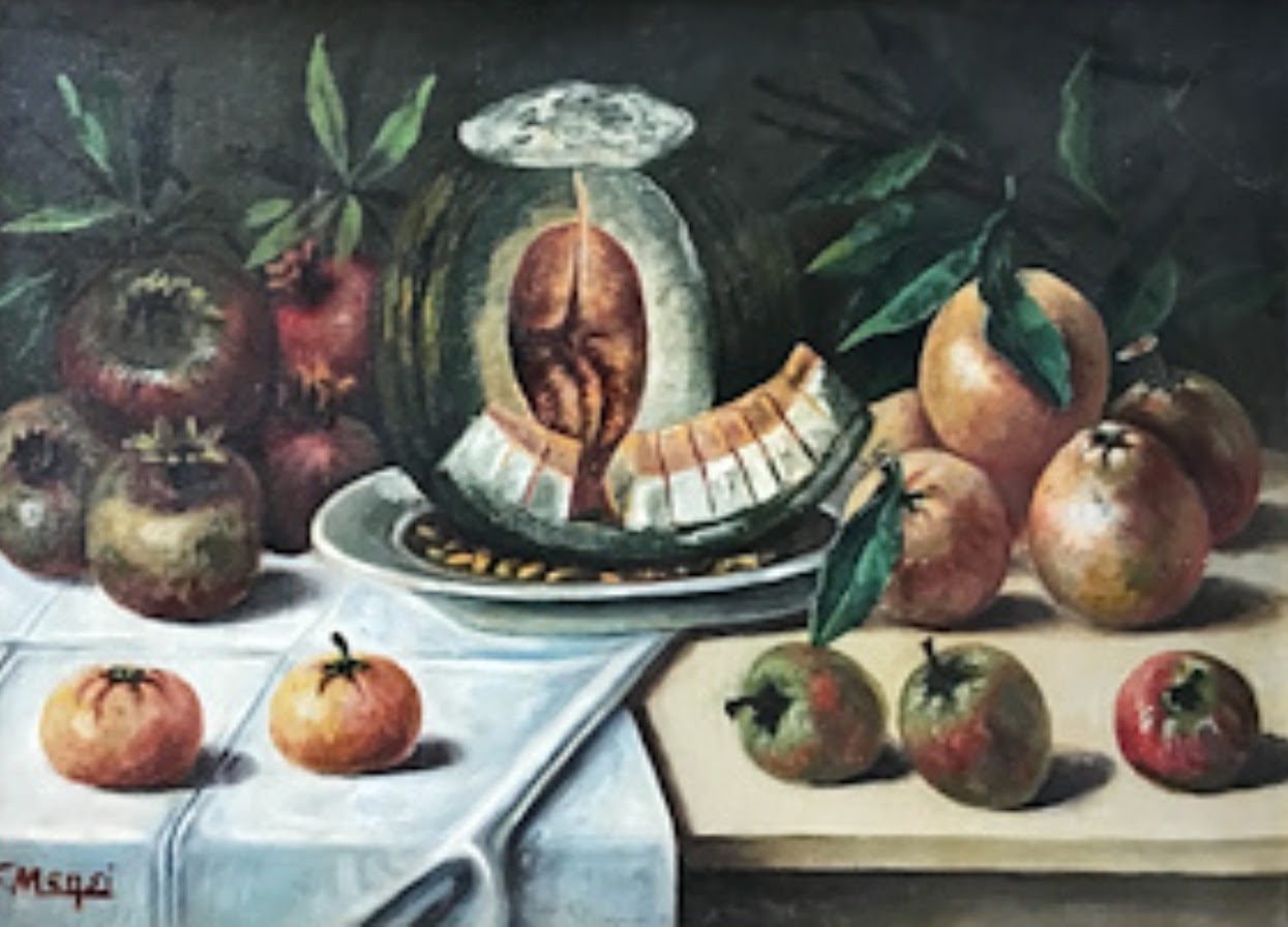 Fuad (Fuat) Mensi Dileksiz 1880-1965, Narlı Natürmort, 1939, Tuval Üzerine Yağlıboya, 30X39 cm.
