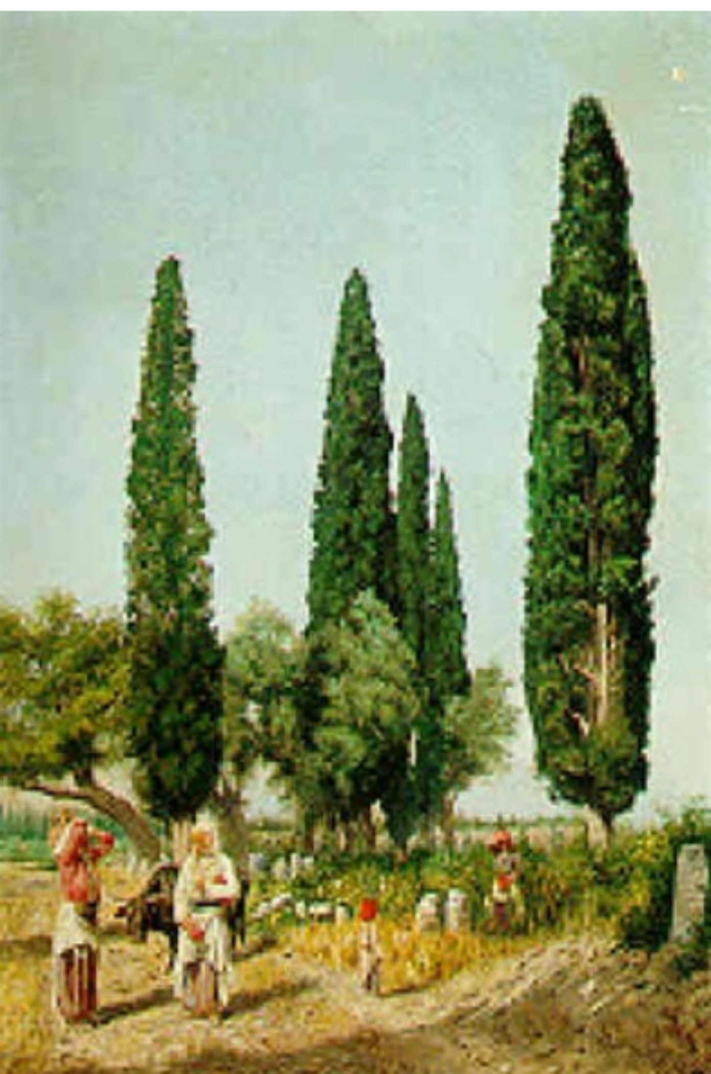 Kıbrıs Sedirlerinin Altında, Tuval üzerine yağlıboya, 78X54 cm.