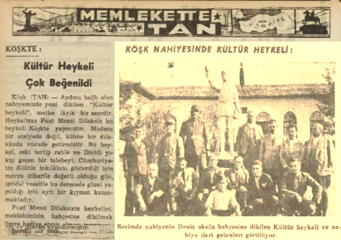 Aydın’ın Köşk nahiyesinde yapılan Kültür Heykeli ile ilgili gazete haberi…