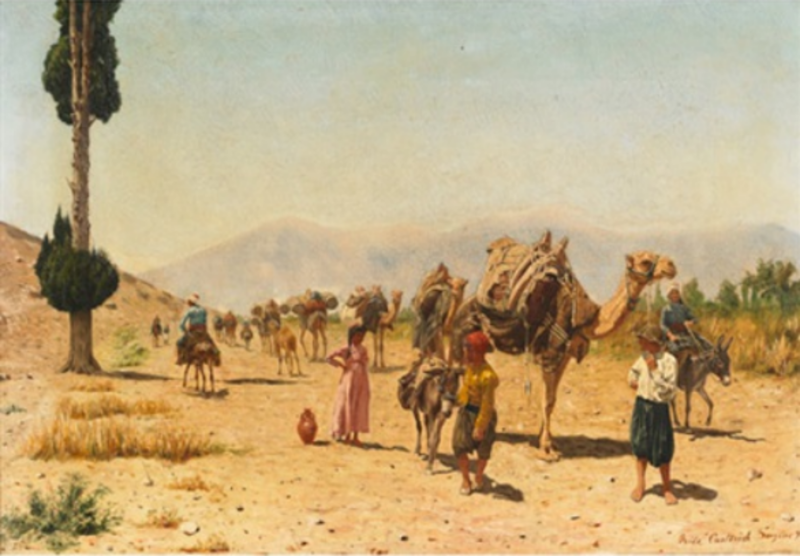 Çölde Karavan, Tuval üzerine yağlıboya, 31,5X47 cm.