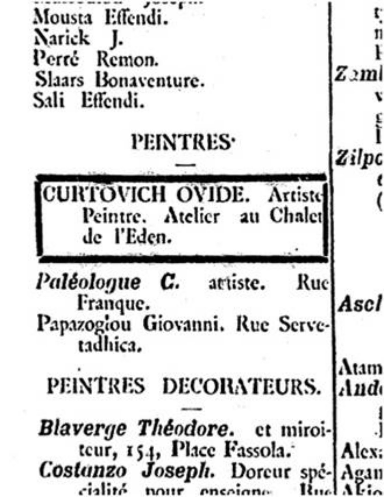 Daşçı, S., “İzmir Mozayiğinden Bir Renk: Ressam Ovide Curtovich“, Yayınlanmamış makale, s. 9.