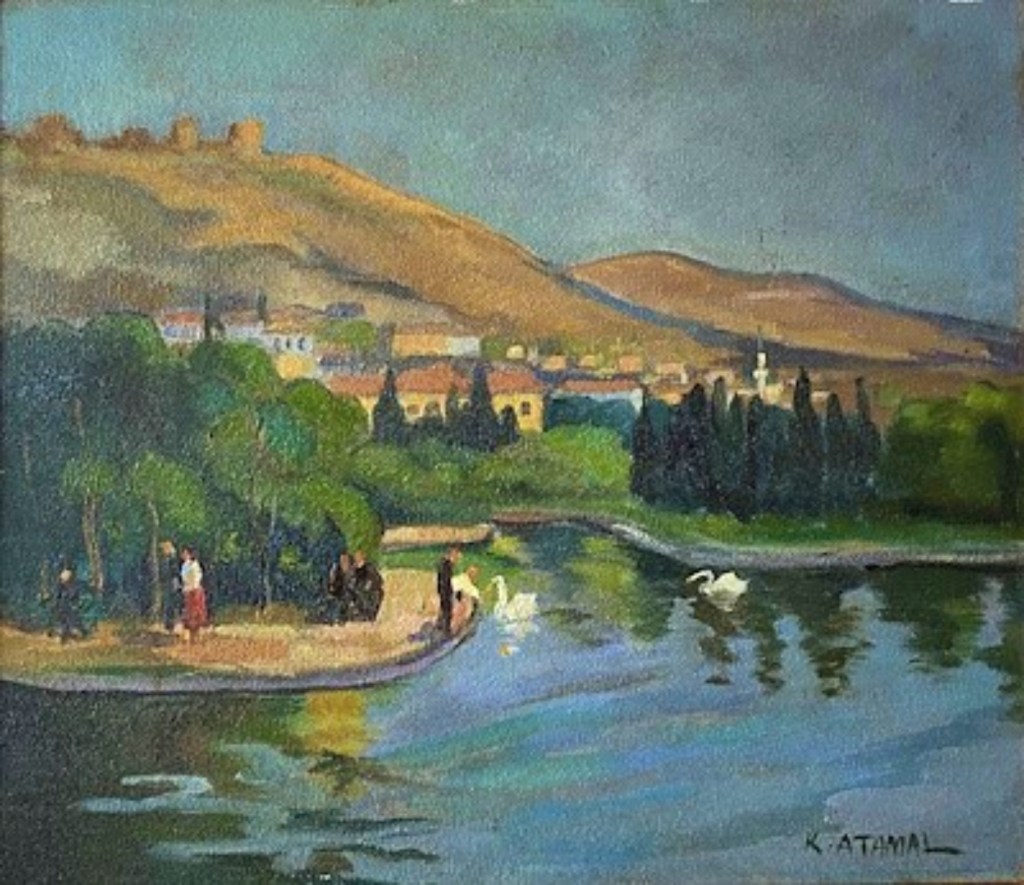 Kadri Atamal (1901-1993), Isparta Gölü, İmzalı, Tuval üzerine yağlıboya, 47X61 cm.