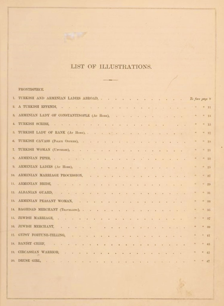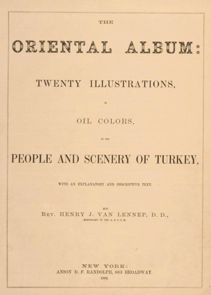 1) 1862’de John Murray tarafından yayınlanan “The Oriental Album: Twenty Illustrations, Oil Colors, People and Scenery Turkey” (Doğu Albümü: Açıklayıcı ve Betimleyici Metinle birlikte Türkiye İnsanları ve Manzaralarının Yağlıboya Renklerde Yirmi İllüstrasyonu),