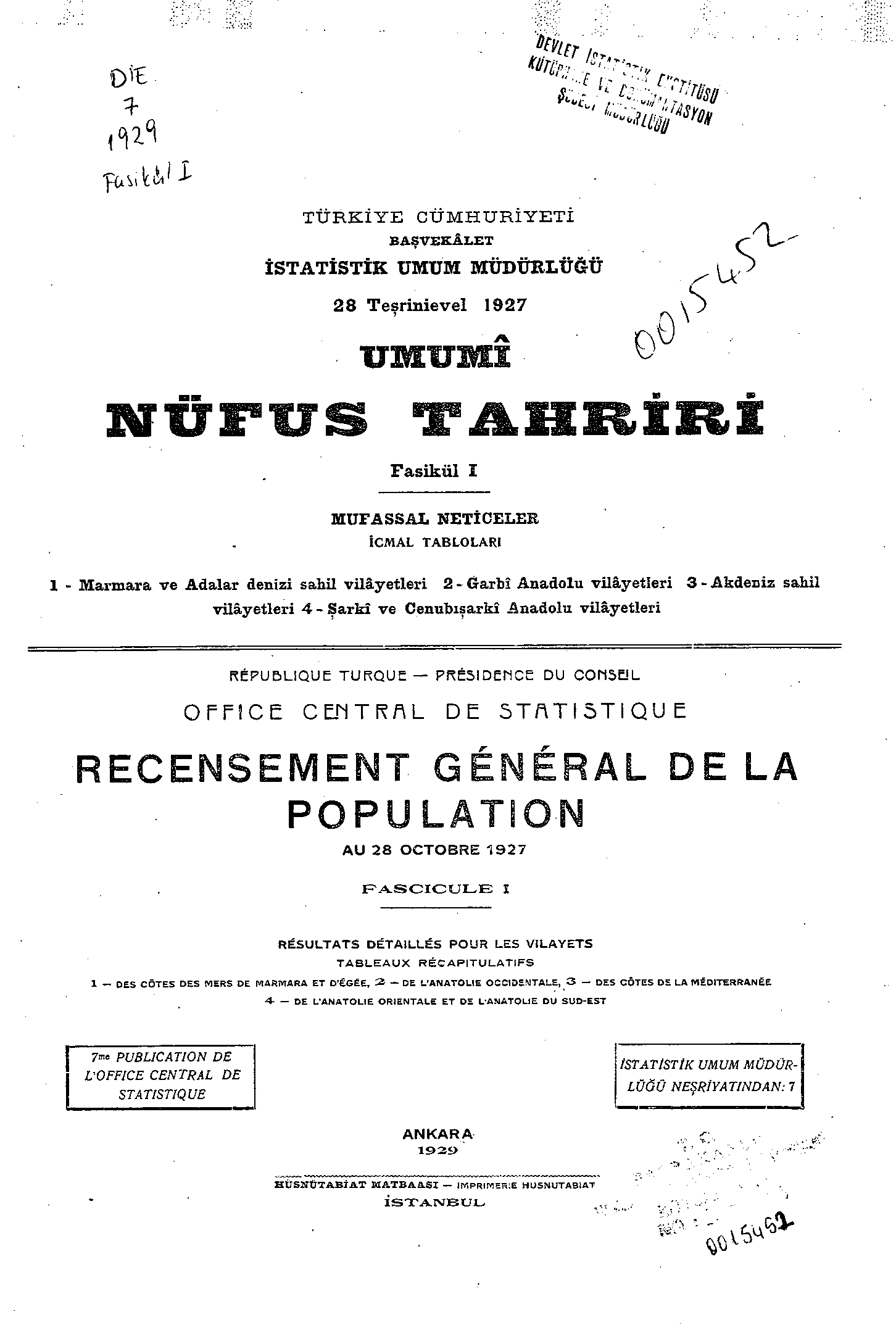 1927 Nüfus Sayımı ile ilgili açıklayıcı birkaç bilgi…